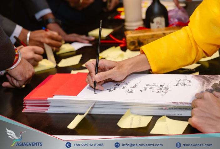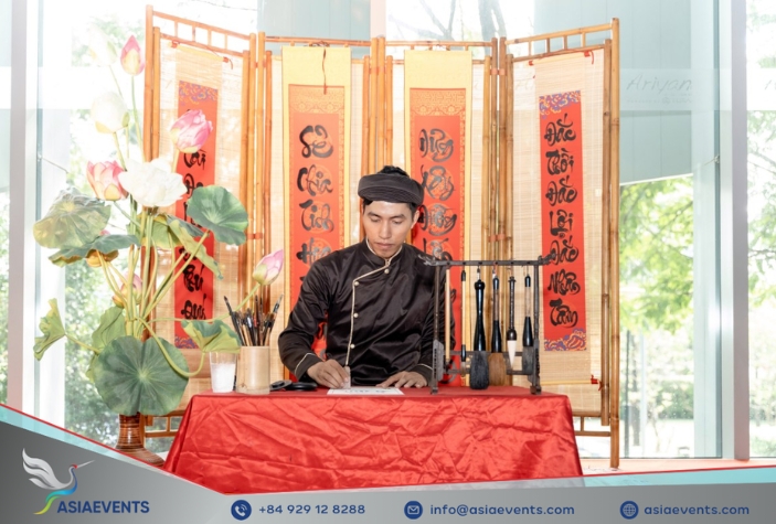 Traditional linguistic features such as calligraphy, folk poetry, or proverbs can also be highlighted in stage design, gifts, or opening ceremonies - adding elegance and cultural meaning to the overall atmosphere.