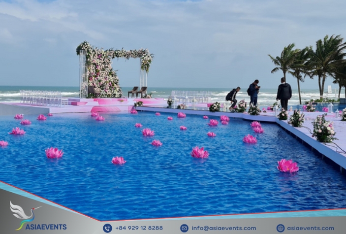 For beach weddings, go for soft tropical tones, flowing drapery, and fresh florals that complement Vietnam’s natural beauty.
